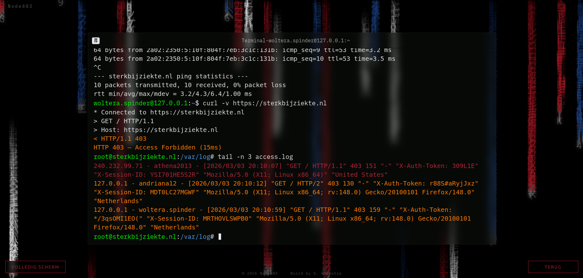 Node403 is an interactive browser-based security simulation that demonstrates how modern authorization systems deny requests using the HTTP 403 Forbidden response. The project visualizes access control enforcement inside a terminal-style interface that mimics internal security monitoring consoles.